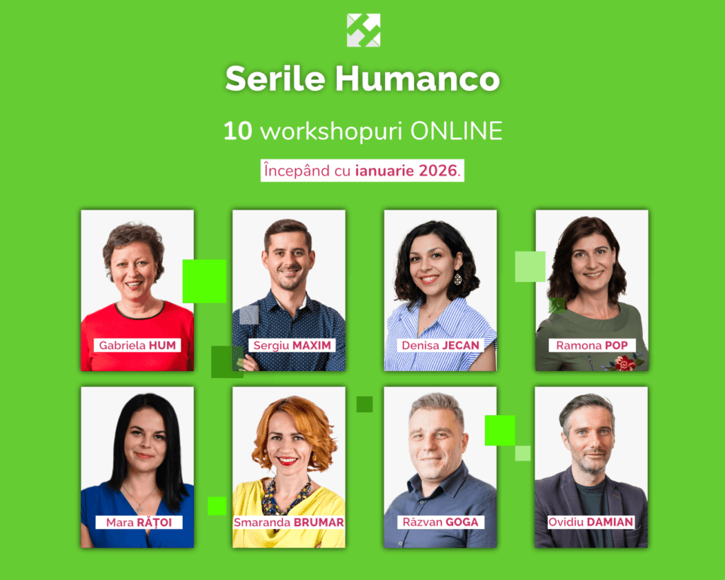 Serile Humanco - o serie de 10 workshopuri online derulate pe parcursul anului 2026, care își propun să creeze un spațiu pentru reflecție, pentru dialog sincer, în care să ne desprindem de ritmul grăbit al vieții de zi cu zi. În fiecare lună, abordăm o temă diferită, care urmărește un fir comun: bucuria.
